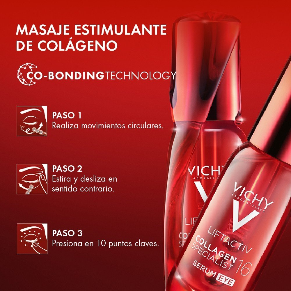 Nuestro serum de contorno de ojos Collagen Specialist 16 cuenta con un aplicador roller 360° diseñado para realizar un masaje potenciador del colágeno.