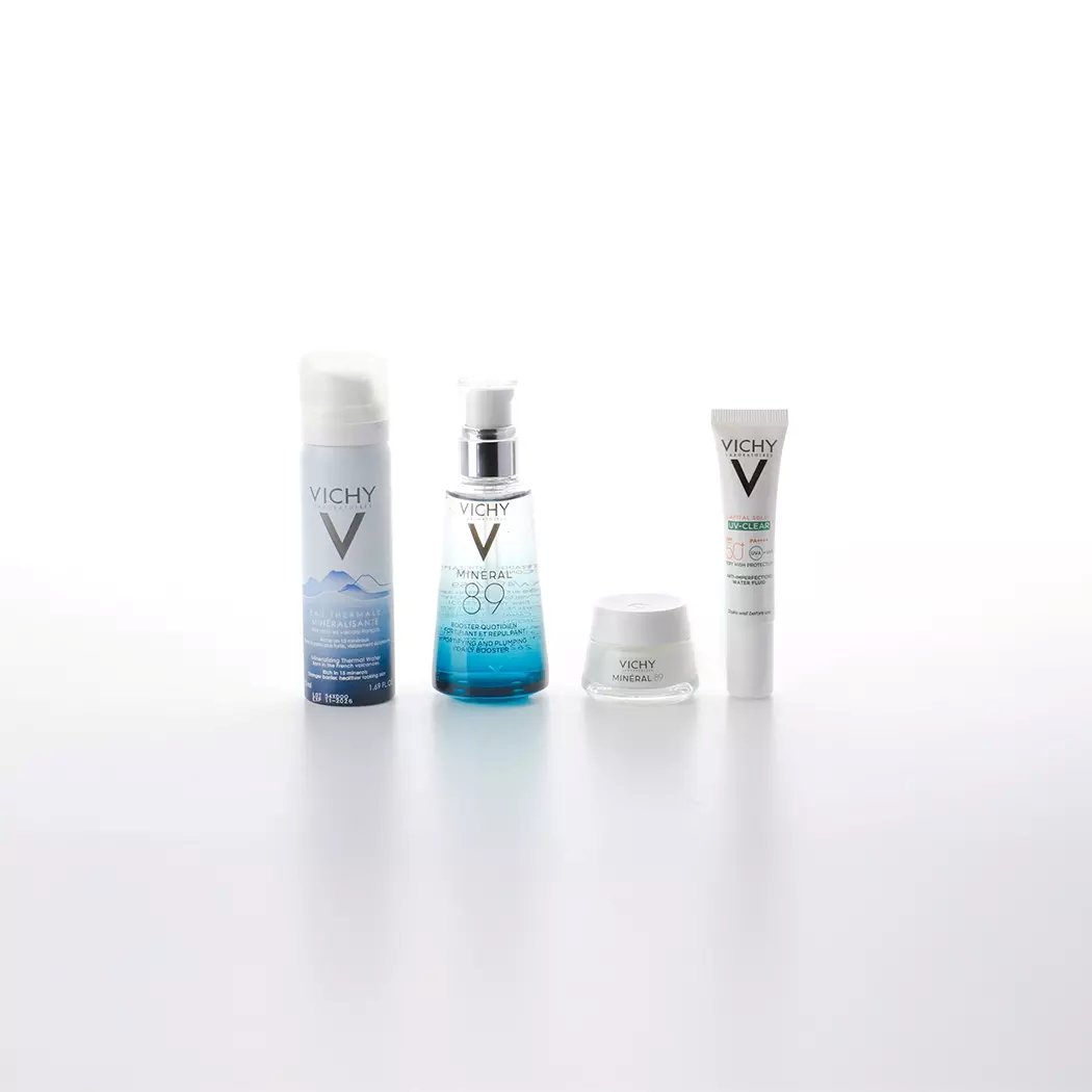 AGUA TERMAL 50ML, MINÉRAL 89 DAILY BOOSTER 50ML, MINÉRAL 89 72H CREMA HIDRATANTE 15ML, CAPITAL SOLEIL UV CLEAR SPF 50+ 15ML.