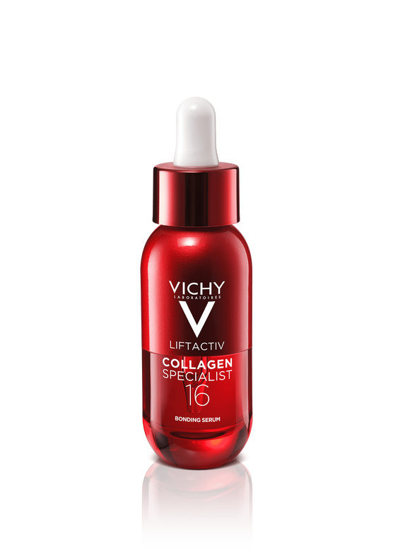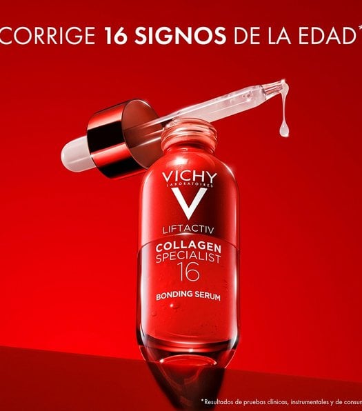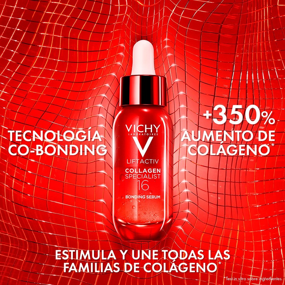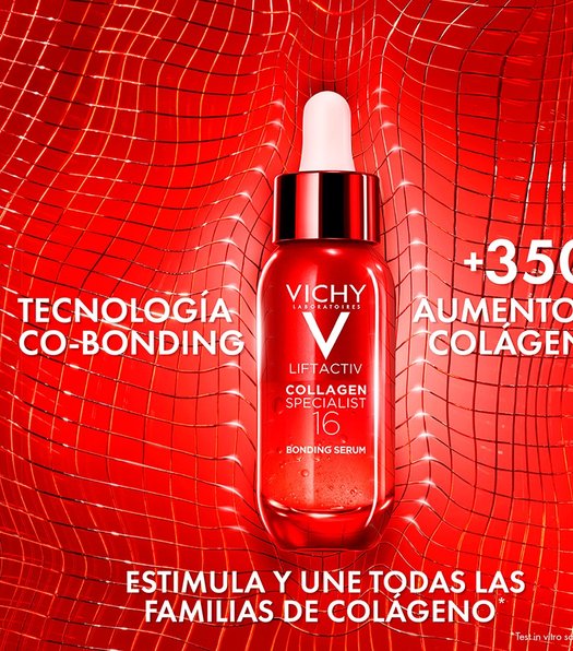 ¿La ciencia detrás de una piel joven? No se trata solo de uno, sino de 16 colágenos. Ahora, en la nueva gama Vichy Collagen Specialist 16, la exclusiva Tecnología Co-Bonding (Ramnosa + Péptidos + Maitake) potencia y une todas las familias de colágeno* para una matriz de colágeno más fuerte. Corrige 16 signos de la edad**.