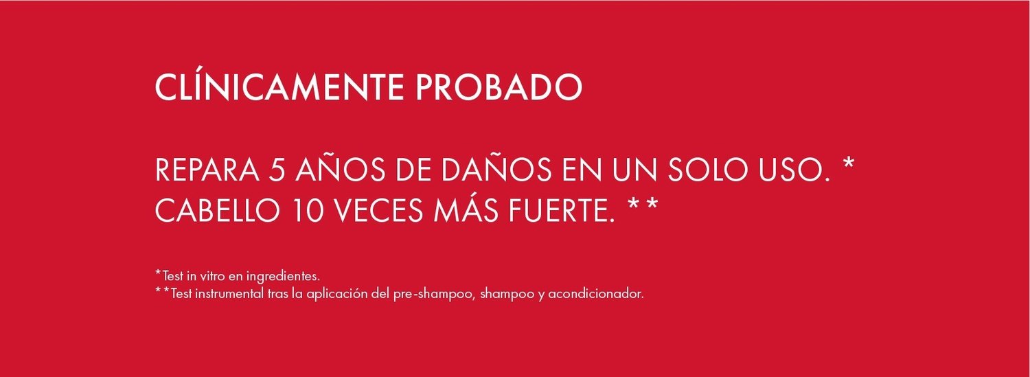 Refuerza la estructura interna más profunda de la fibra, que a su vez previene la caída del cabello debida al quiebre. Repara 5 años de daños en un solo uso.* * Test instrumental tras la aplicación de la rutina completa.