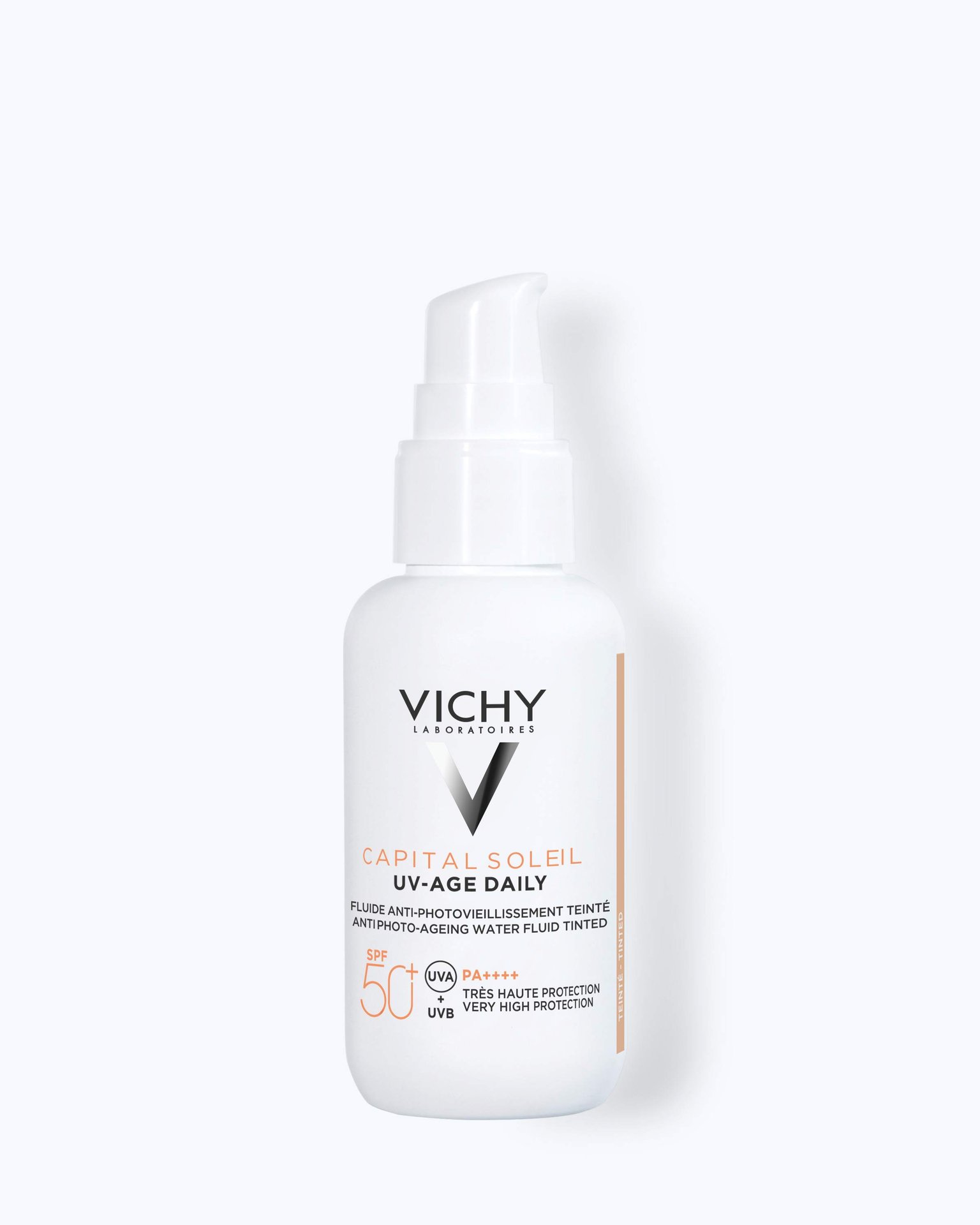 Aplicar UV-AGE DAILY como el último paso de la rutina de cuidado de la piel, tras el sérum y el tratamiento diario. Volver a aplicar el producto justo antes de la exposición al sol y renovarlo con frecuencia y generosamente, en especial después de nadar, sudar o secarte.